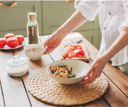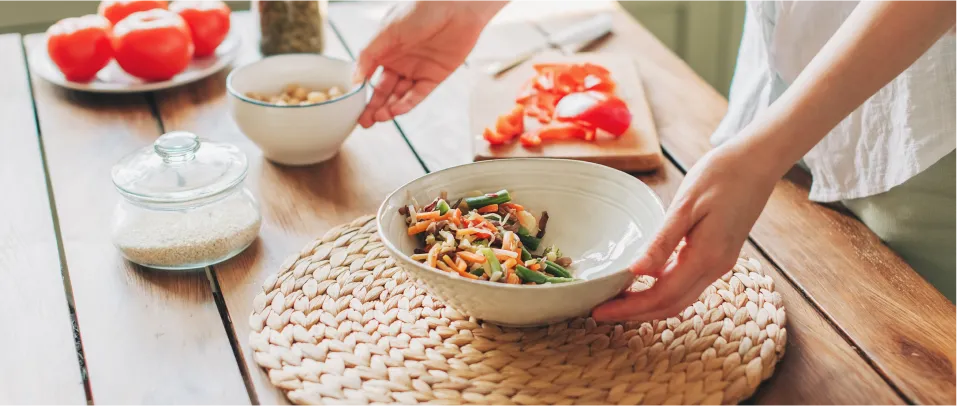 - правильное питание — малыми порциями несколько раз в день, исключая фастфуд, сладости, жирную пищу и увеличив потребление овощей, цельнозерновых продуктов;